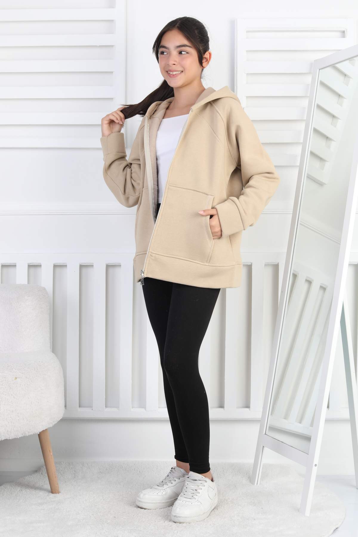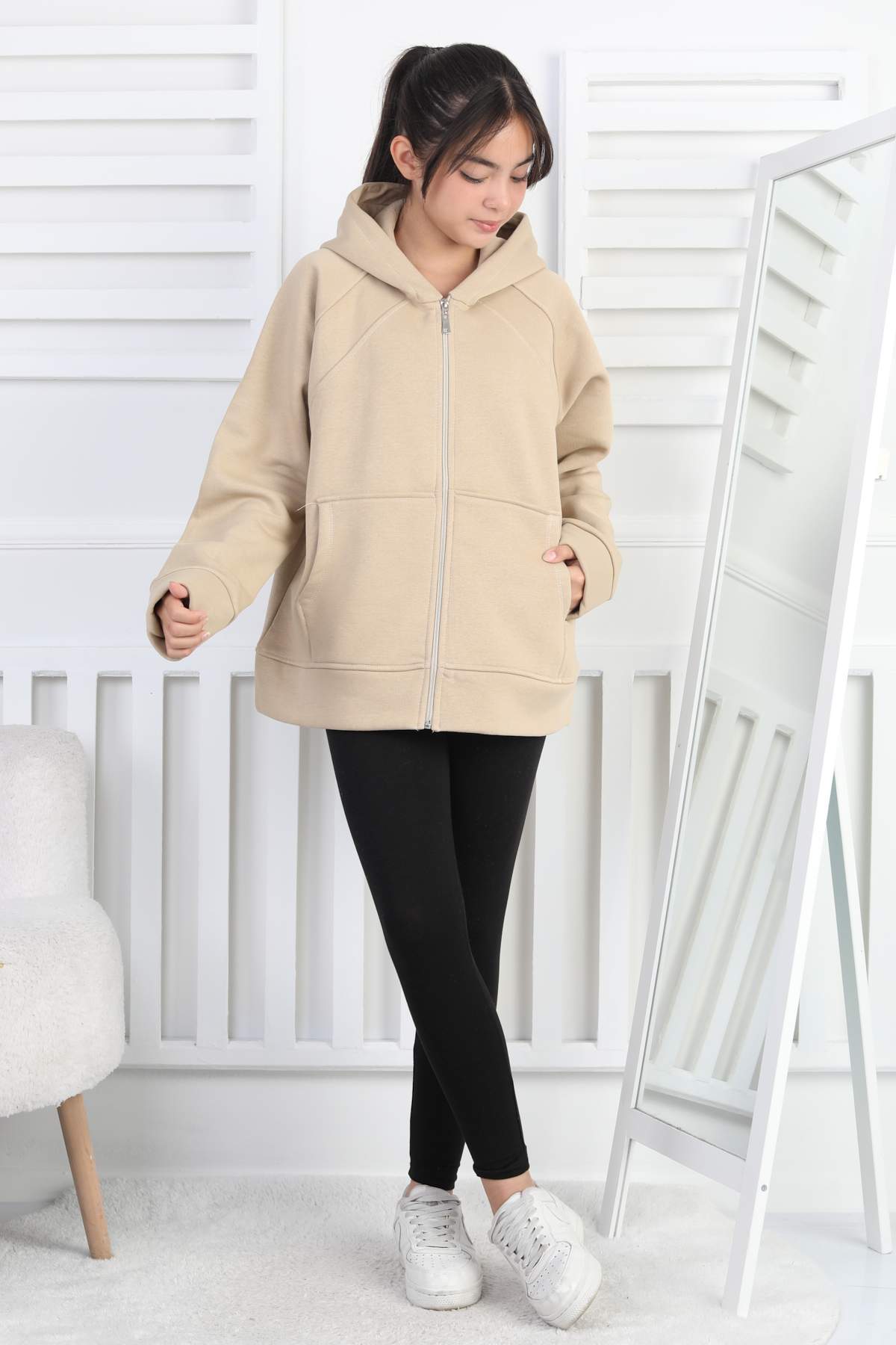 3 İP GARSON SWEAT – BEJ