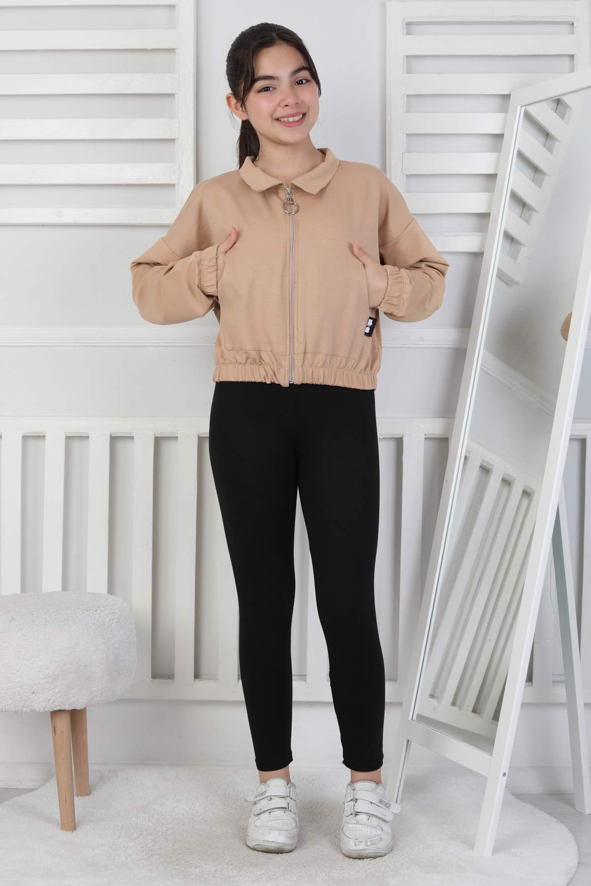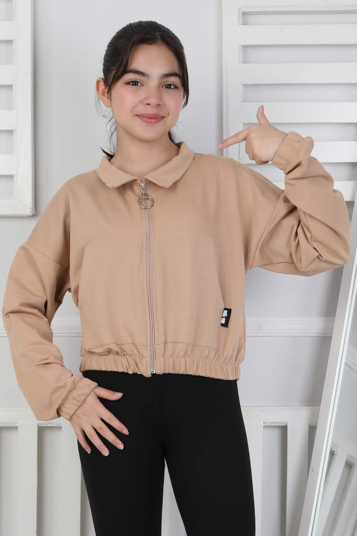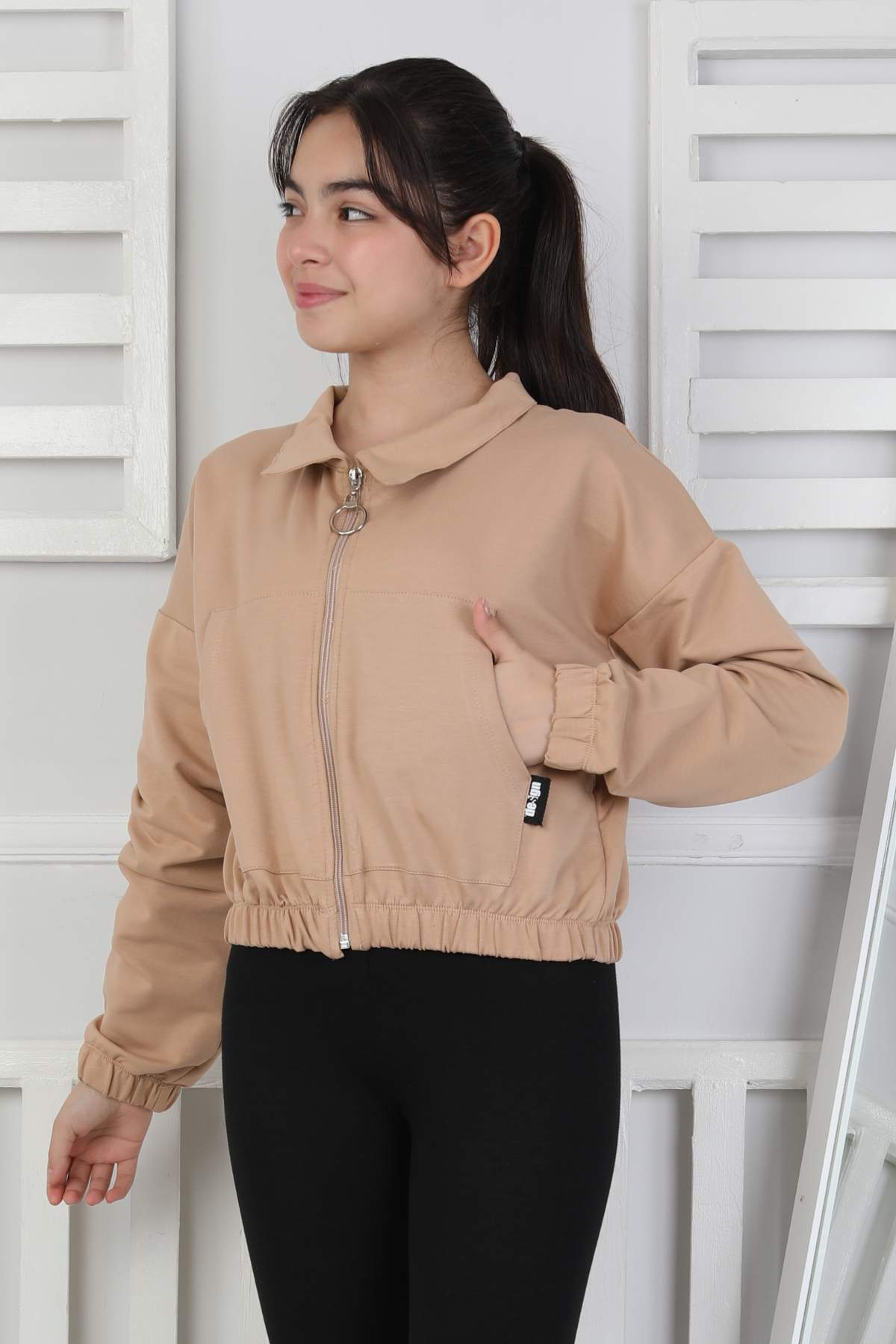 GARSON YAKASI FERMUARLI SWEAT – KAHVE
