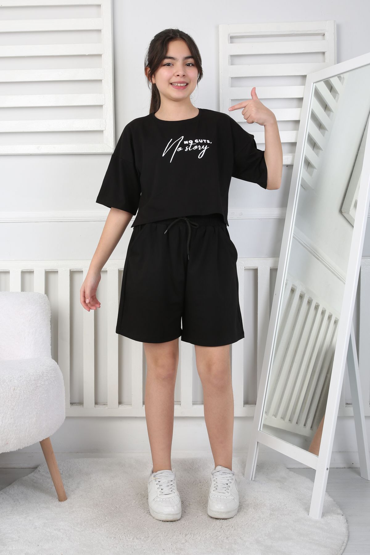 KOMPAK GARSON ŞORTLU YIKAMALI TAKIM – SİYAH