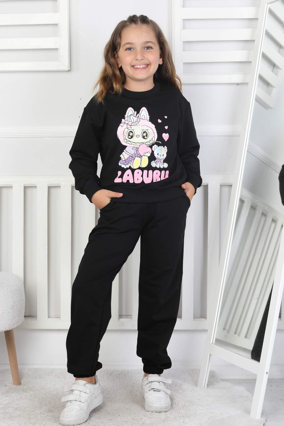 ORTA BISIKLET YAKA LABUBU TAKIM – SİYAH