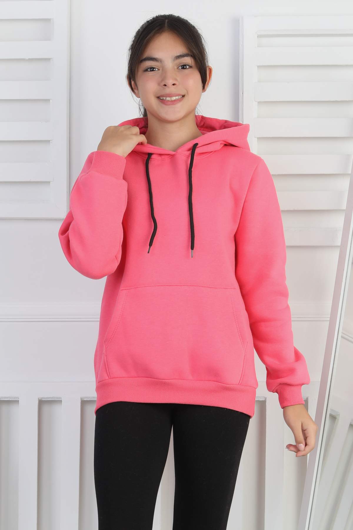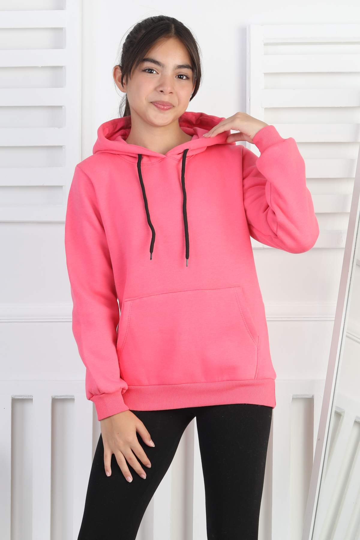 SWEET GARSON ÜÇ İPLİK KANGURU CEPLİ KAPİŞONLU BASKISIZ – GÜL KURUSU