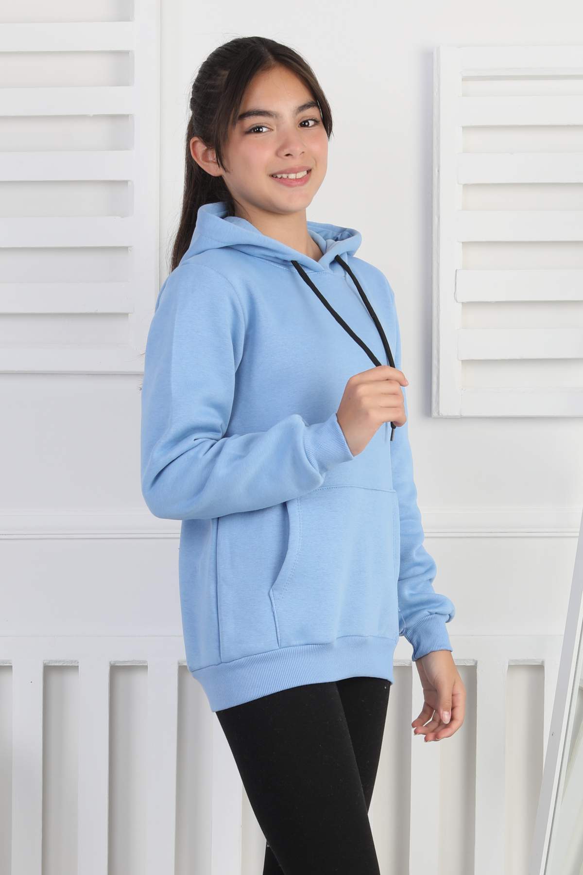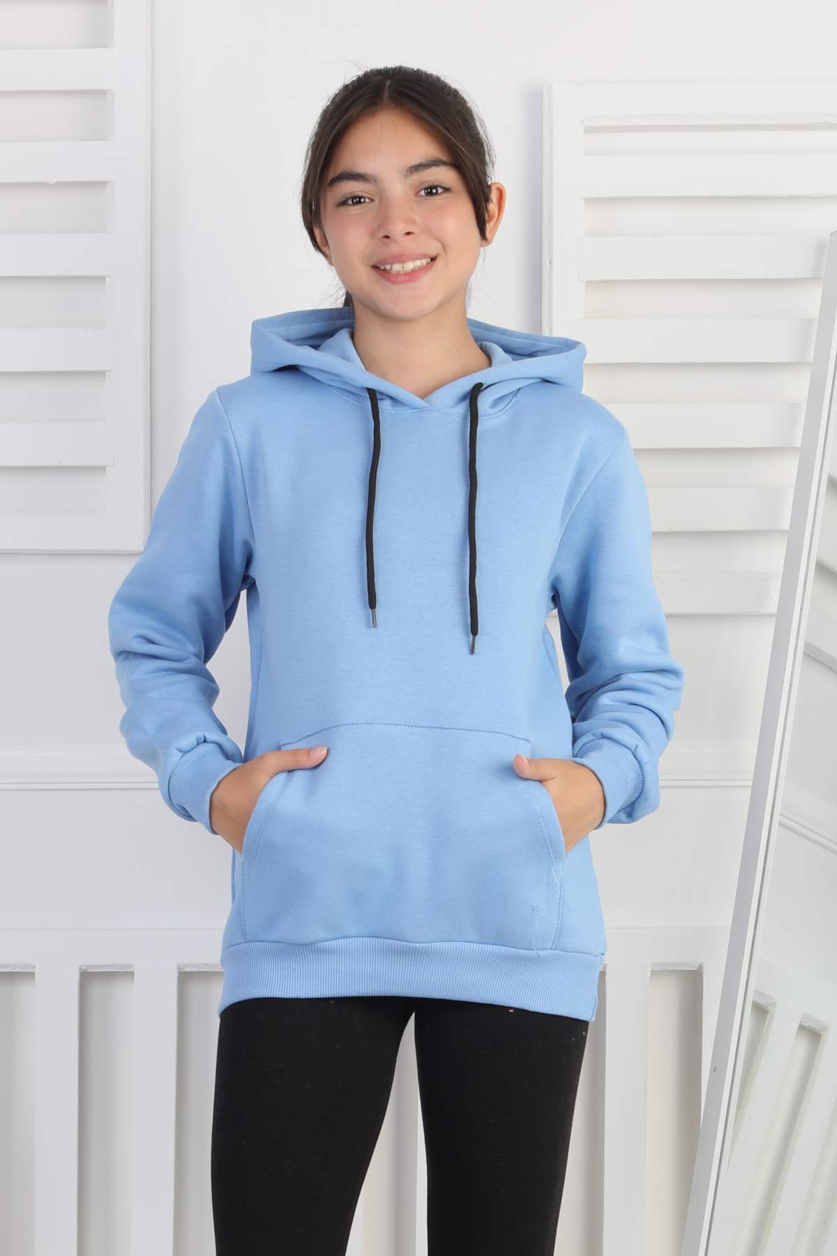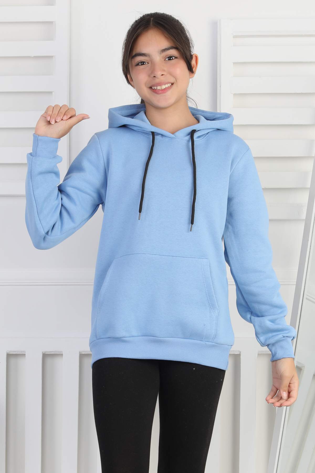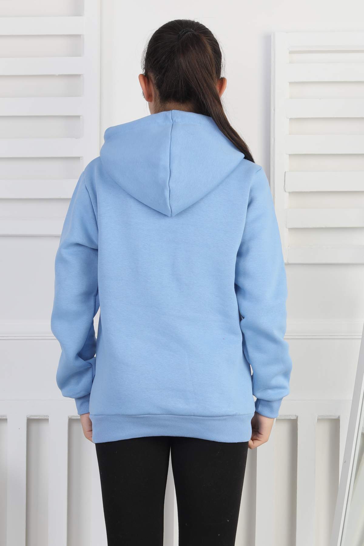 SWEET GARSON ÜÇ İPLİK KANGURU CEPLİ KAPİŞONLU BASKISIZ – MAVİ