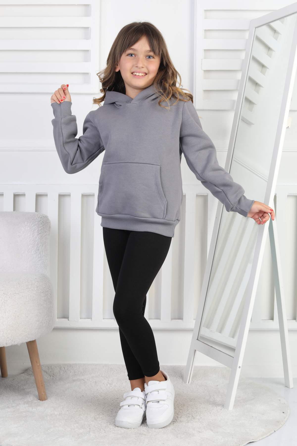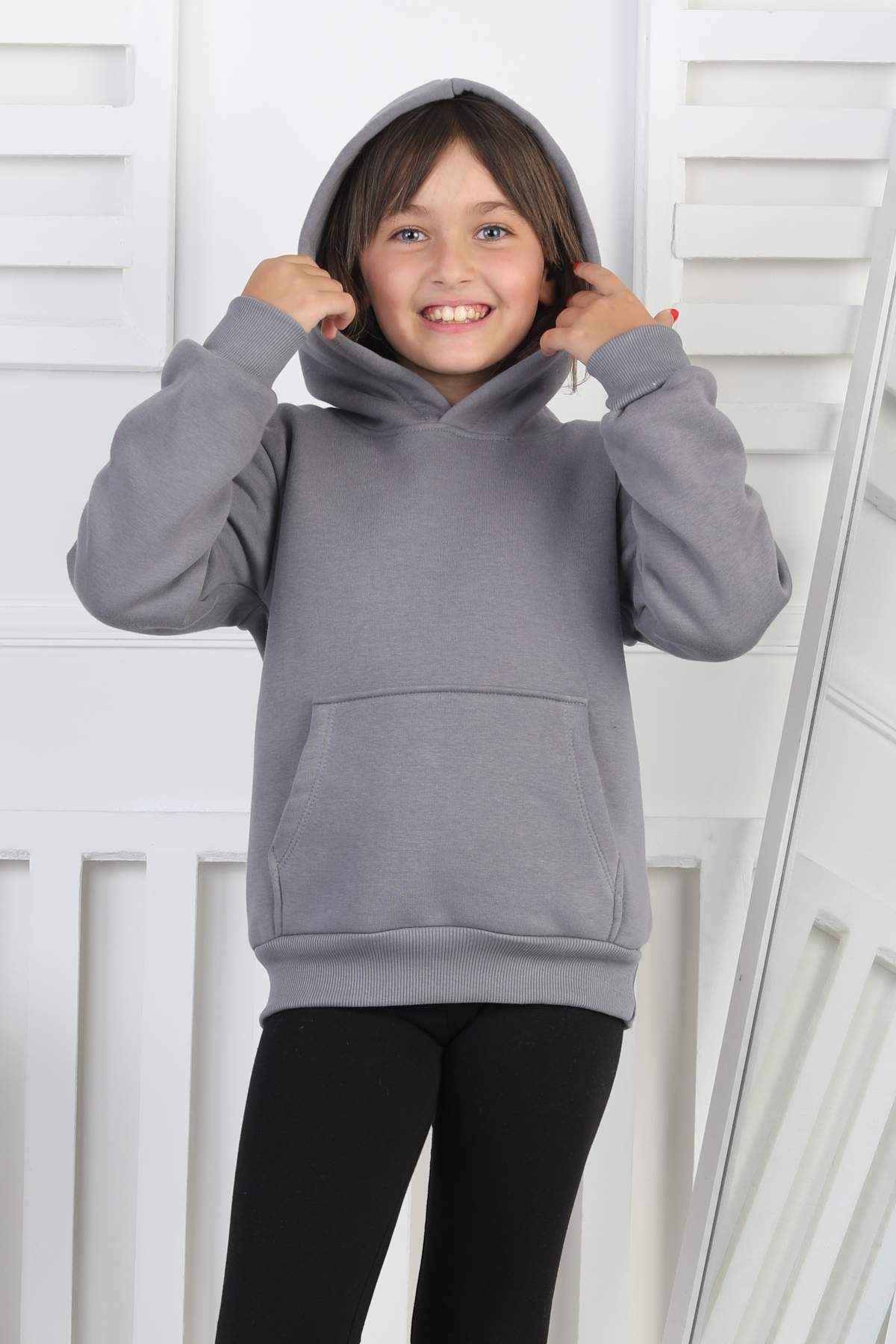 SWEET ORTA ÜÇ İPLİK KANGURU CEPLİ KAPŞONLU BASKISIZ – FÜME